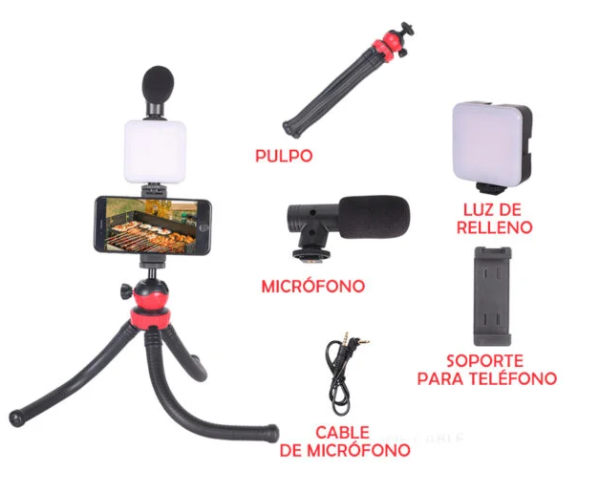 Luces LED de Estudio: Ilumina tus videos con las luces LED de estudio incluidas. Ajusta la intensidad y la temperatura del color para lograr la iluminación perfecta.
